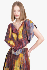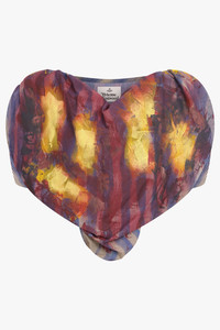 The Vivienne Westwood Painted Stripe Print Heart Shape Top is crafted in a cotton material. The style features a heart shaped silhouette with a plunging boat neckline and pointed heart hemline. The print is designed with a stripe background and has a rough, hand-painted over finish. Fabrication: 100% Organic Cotton Size and Fit Sophie: Model is 179cm/5’10” and is wearing a size XS Model Measurements: Bust: 76cm, Waist: 61cm, Hips 87.5cm Fits true to size Measurements XS: Bust 80cm, Waist 100cm, Length 54cm S: Bust 82cm, Waist 102cm, Length 54cm