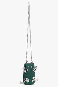 The Vivienne Westwood Prince Frog Frame Purse adds a playful twist to the house’s iconic design language, marrying whimsical elegance with refined craftsmanship. Inspired by classic framed coin purses, this piece is reimagined through a sculptural frog motif finished in polished silver-tone hardware and set against a rich green body — a signature blend of British eccentricity and luxury refinement. Drawing on archival cues and historical decor techniques, the metal “limbs” and eyes of the frog motif are rendered with repousse-inspired detailing, while the kiss-lock frame ensures a touch of nostalgic charm. - Main material: 100% wool body - Hardware: Silver-tone plated frame and frog-detail hardware - Kiss-lock closure with structured top-handle design - Detachable chain strap for versatile wear - Signature embroidered orb logo for brand authenticity - Compact, framed silhouette with playful sculptural detailing - Designed by Vivienne Westwood to blend heritage whimsy with modern luxury Style with a Vivienne Westwood necklace and an evening dress for a bold, playful statement.