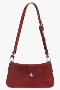 A contemporary expression of the house’s emblematic codes, the Tasha Suede Shoulder Bag in Burgundy blends refined minimalism with sculptural softness. Shaped with a slim, gently curved silhouette, it is crafted in plush burgundy suede that brings richness and depth to its clean lines. At the front, Vivienne Westwood’s iconic bas relief Orb - evoking heritage encircled by the rings of the future - adds a striking, quietly symbolic focal point. Designed for modern versatility, the piece features an adjustable, removable strap and a compact profile that keeps essentials close with effortless ease. Fabrication: Removable and adjustable strap for versatile styling Slim silhouette with softly curved edges Top-zip closure for secure access Compact size that fits a smartphone and daily essentials Made in Italy Style it with warm tonal dressing or tailored neutrals to enhance its refined, contemporary richness. Measurements Length: 23cm, Height: 12cm, Depth: 3cm