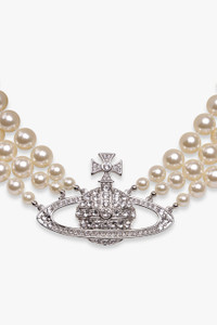 THREE ROW PEARL BAS RELIEF CHOKER | SILVER/PEARL/CRYSTAL