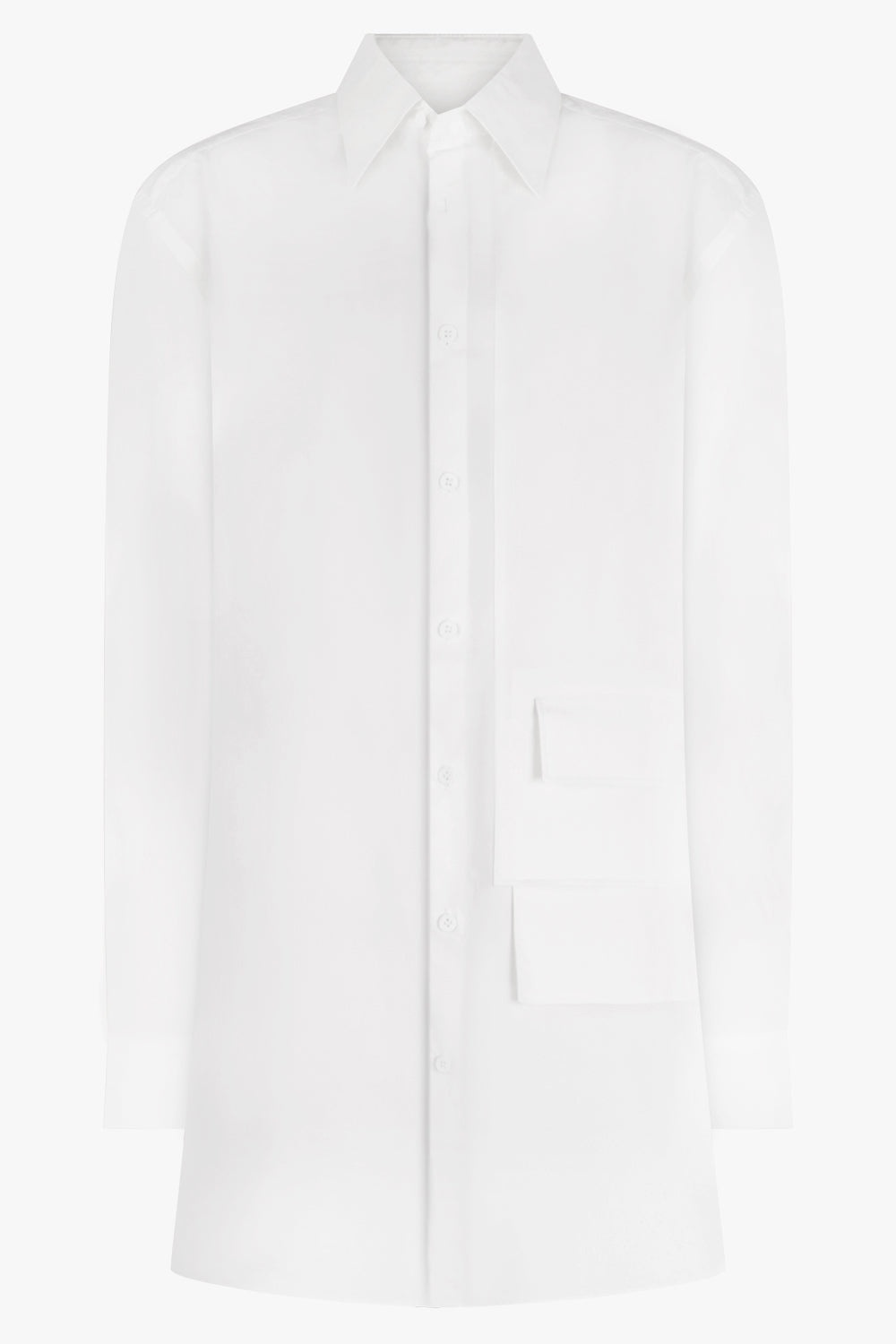 Relaxed flap-pocket detail shirt from Y-3 featuring Off-white, cotton, classic collar, front button fastening, long sleeves, front flap pocket and curved hem. Fabrication: 59% Cotton, 33% Polyamide ,8% Elastic Size and Fit Alex: Model is 183cm/6’00” and is wearing a size S Model Measurements: Bust: 81cm, Waist: 75cm, Hips 81cm Fits true to size Measurements XS: Bust 108cm, Waist 108cm, Hip 108cm, Length 83m S: Bust 112cm, Waist 112cm, Hip 112cm, Length 83cm M: Bust 116cm, Waist 116cm, Hip 116cm, Length 83cm L: Bust 120cm, Waist 120cm, Hip 120cm, Length 83cm XL: Bust 124cm, Waist 124cm, Hip 124cm, Length 83cm