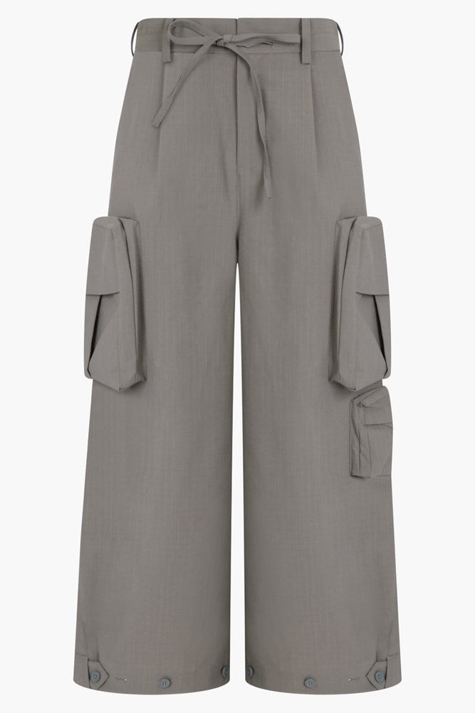 WIDE LEG COTTON CARGO PANTS | STONE GREEN