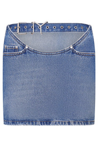 DENIM MINI SKIRT Y-BELT ARC CUT OUT | FADED BLUE