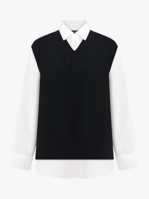 KNIT S/S PULLOVER WITH STRIPE SHIRT PANELLING | BLACK/NAVY