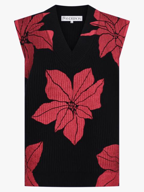 FLORAL PRINT V-NECK VEST KNIT | BLACK/RED