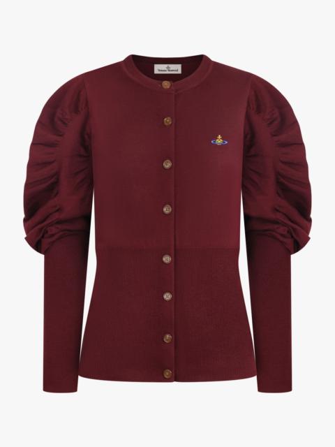 ELI BALLOON SHOULDER KNIT CARDIGAN | BRICK RED