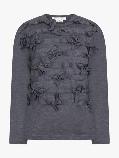 CREW NECK LS TOP WITH KNOT RIBBON DETAIL | GREY