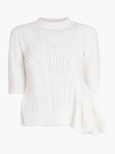 3/4 SLEEVE CHAIN KNIT WITH ASYMMETRIC HEM DETAIL | OFF WHITE