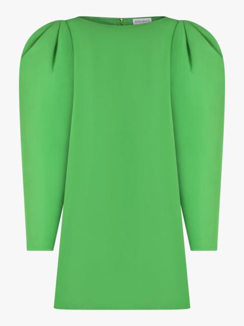 TAFFETA PUFF GATHERED SLEEVE MINI DRESS | GREEN