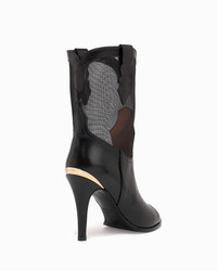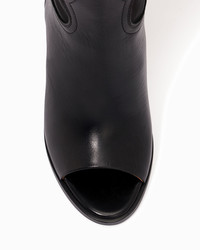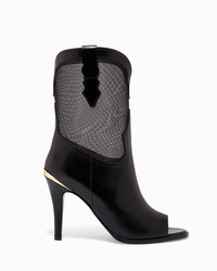 A daring mixed material, peep toe boot. PRODUCT DESCRIPTION Pull on ankle boot with peep toe. Calf and mesh upper. 95mm/3.75" heel height. 6mm padded insole. Leather lining. Leather outsole with stitched welt. Signature Partlow plaque. Handcrafted in Italy. DETAILS AND CARE Brush off any dust or dirt with a soft bristle brush or soft cloth. Store boots in protective dustbags provided between wearings.