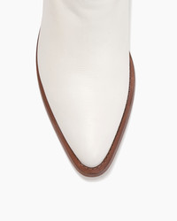 A structured mid-calf Western Boot crafted from supple white nappa leather, designed by Adam Lippes x Partlow. PRODUCT DESCRIPTION Pull-on mid calf boot. Classic cowboy silhouette. Nappa upper. 55mm/2.16" heel height. 6mm padded insole. Leather lining. Leather outsole with stitched welt. Signature Partlow plaque. Handcrafted in Italy. DETAILS AND CARE Brush off any dust or dirt with a soft bristle brush or soft cloth. Store boots in protective dustbags provided between wearings.