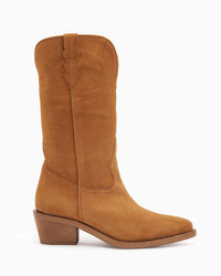 A shearling-lined, cold weather cowboy boot in tan suede. PRODUCT DESCRIPTION Pull-on classic cowboy silhouette. Suede upper. 55mm/2.16" heel height. 6mm padded insole. Shearling lining. Leather outsole with stitched welt. Signature Partlow plaque. Handcrafted in Italy. DETAILS AND CARE Brush off any dust or dirt with a soft bristle brush or soft cloth. Store boots in protective dustbags provided between wearings.