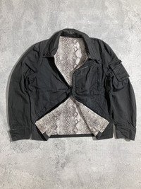 PLEASE read all description carefully before buying. The colour might be slightly different due to unequal lighting set up. if you have any question,feel free to ask. *PPFM Double Zippe Moto Jacket with Snake Skin Print Lining *made in : - *tag : PPFM *material : 100% Cotton *condition : as good as new Notes: We inspect each item one by one, but there may be some oversights *Please Give Us Your Offer, We Can Only Accept The Discount By Negotiation. ask me if you interested. no returns no exchanges no refunds all sales are final * PAYMENT We accept PayPal and Stripe