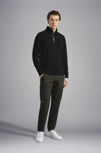 DETAILS High neck with zip Technical fabric inserts Bretagne wool half zip sweater with iconic badge Long sleeves Regular fit Product ID: C0P1033 COMPOSITION & CARE Composition: 100% Wool