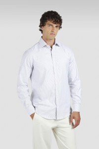 The pieces from the Riviera collection embrace those peaceful moments by the sea in winter when the waves gently crash against the shore, and the fresh air invites you to seek refuge in a minimal-chic style. Paul & Shark reworks a men's wardrobe classic with sophisticated heritage details. This shirt with spread collar is crafted from cotton twill with a texture that’s naturally breathable and luxuriously soft against the skin. Its straight cut with rounded hem ensures a flawless fit, while an embroidered flag on the inner placket nods to quintessential sailing apparel. DETAILS Button closure Cotton twill shirt Shark embroidery Long sleeve J-Fit Product ID: 15313100CF COMPOSITION & CARE Composition: Outside: 100% Cotton