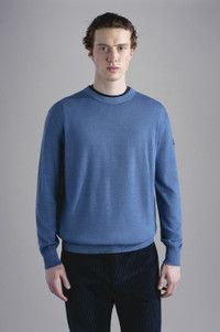DETAILS Moon badge Garment dyed Crewneck Sweater in gauge 12 wool Ribbed collar, cuffs and flounce Jersey knit Product ID: 11311001 COMPOSITION & CARE Composition: 100% Virgin Wool