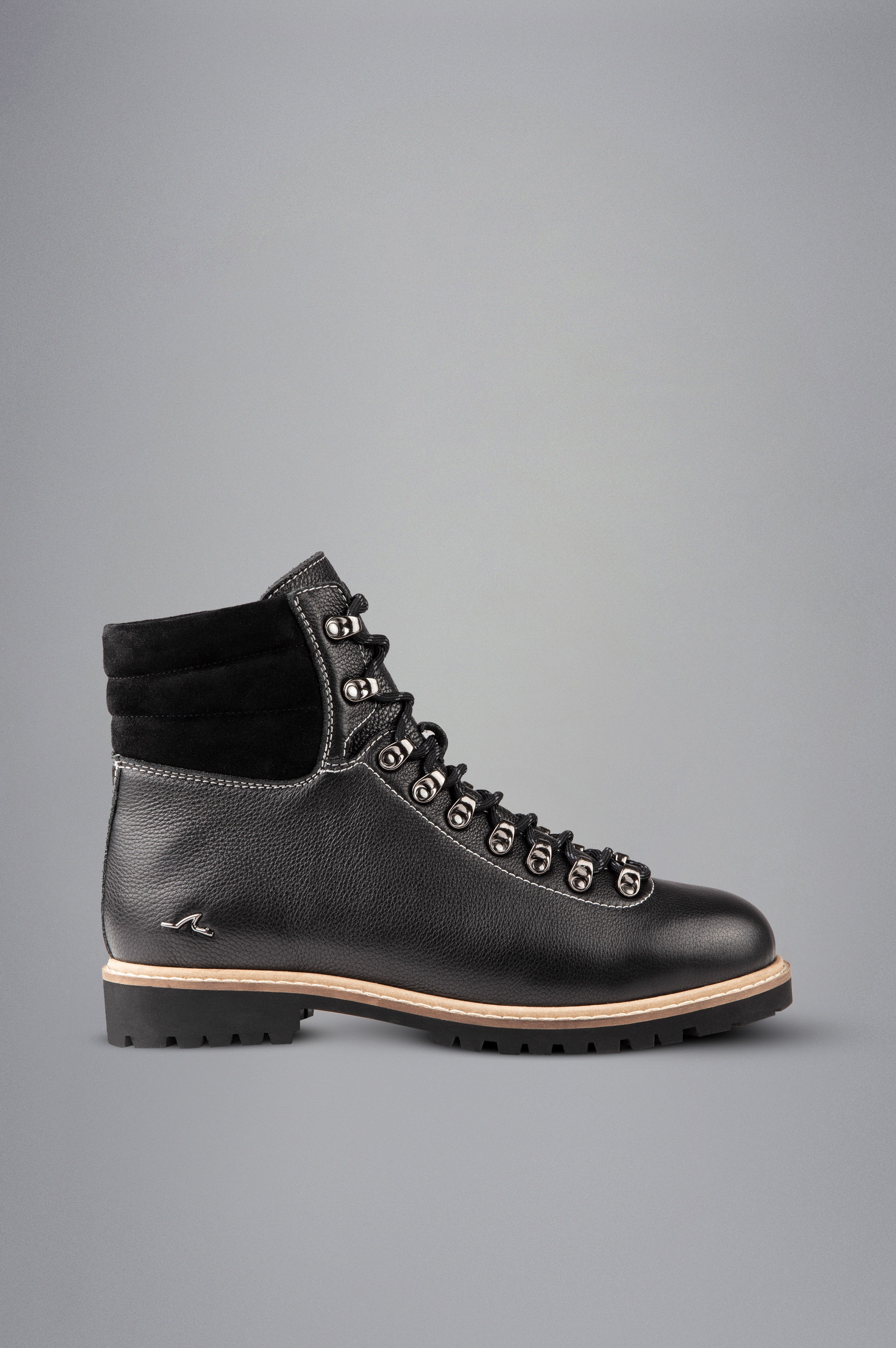 A sporty classic, reinterpreted with luxurious materials and enveloping proportions for maximum comfort from morning to night. This ankle boot fuses functional design with luxurious materials to add an exclusive touch to everyday leisure looks. Crafted from leather, it features a padded collar to support the movement of the foot and a chunky rubber lug sole for maximum grip. Hiking-style cross-over laces and loops complete the look with an edgy touch. DETAILS Lace-up leather ankle Boots Product ID: 14318001 COMPOSITION & CARE Upper: Genuine cow leather - Inserts: Genuine cow leather - Lining: Genuine cow leather - Outsole: 100% Rubber