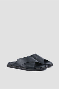 DETAILS Suede slides Hot stamping Product ID: 25418010 COMPOSITION & CARE Composition: Vamp: bovine real leather - Lining: 66% bovine real leather 34% polyester - Outsole: 100% termorubber