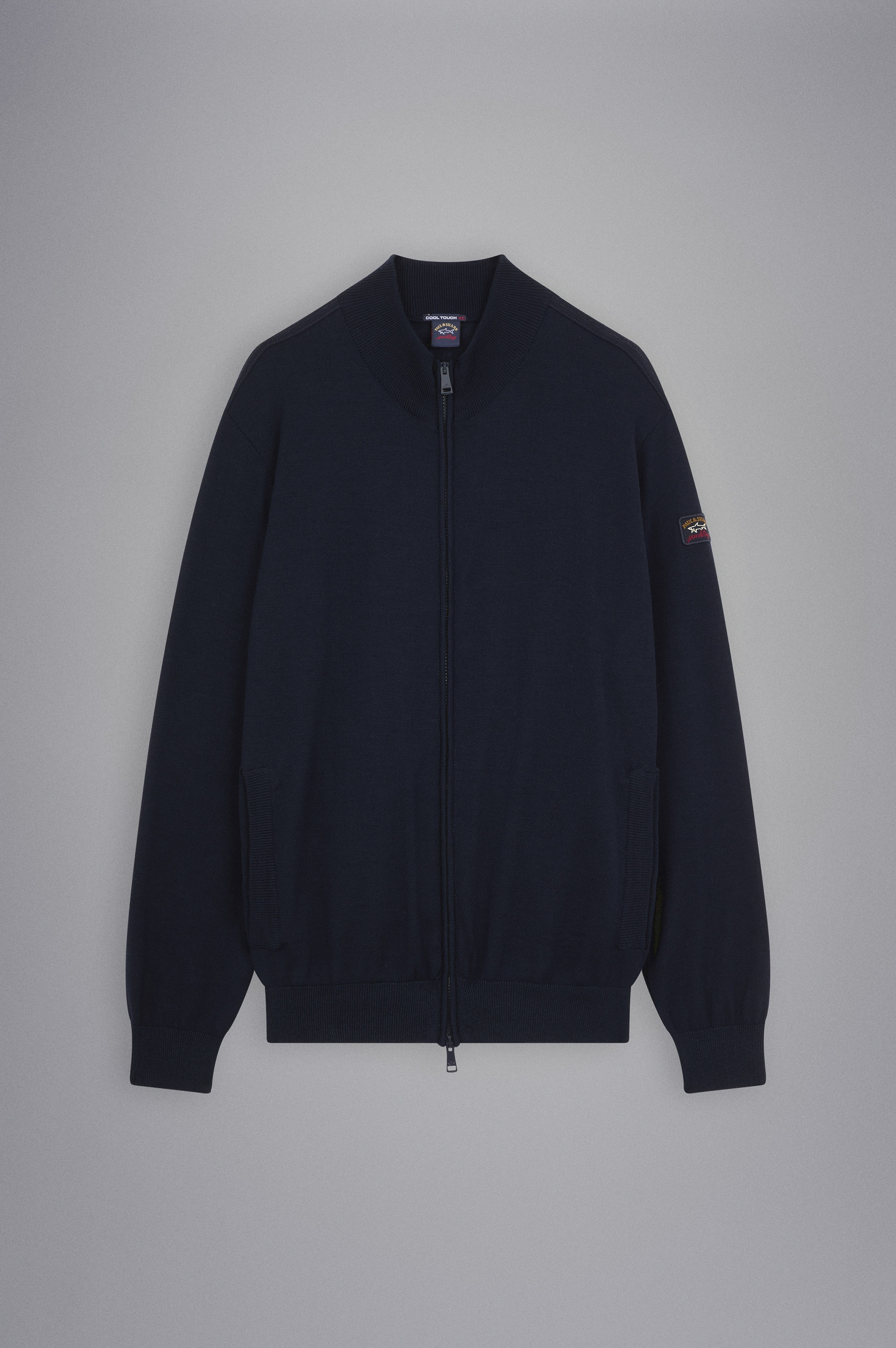 DETAILS Paul&Shark Heritage badge Zip and double slider closure Merino wool full zip sweater with iconic badge Long sleeves Regular fit Product ID: C0P1044 COMPOSITION & CARE Composition: 100% Wool