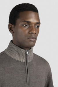 DETAILS Shark label Zip closure Soft Cool Touch wool half-zip sweater fineness 8 Ribbed collar, cuffs and flounce Stocking stitch Long sleeve Regular Fit Product ID: 15311108 COMPOSITION & CARE Composition: 100% virgin wool