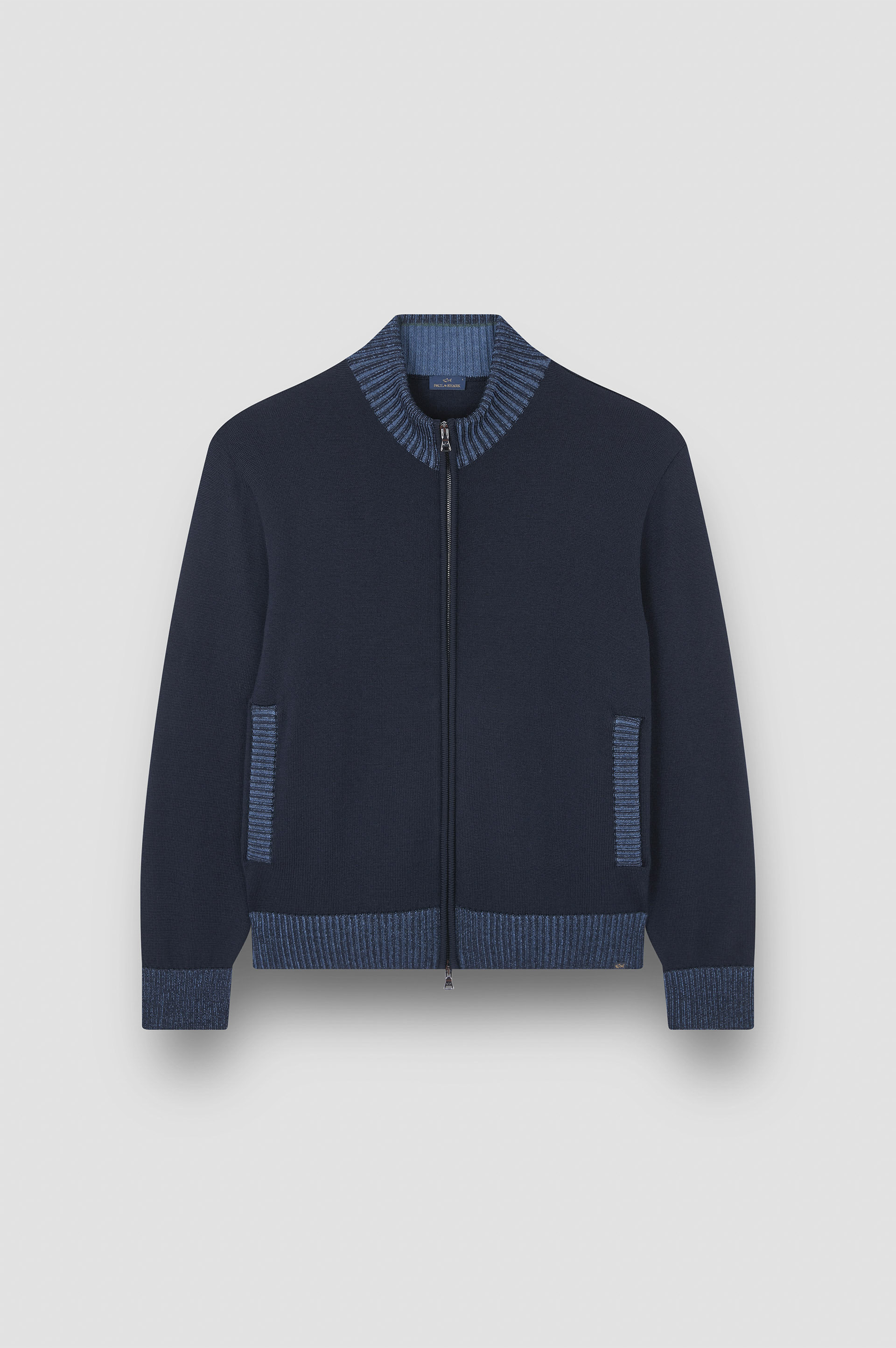 Discover Soft Cool Touch: an innovative finish that results in a fabric that's water-repellent, compact and flexible. This Paul & Shark cardigan is knitted from pure wool with an effortlessly soft weave. Differentiating it from the rest is a Soft Cool Touch treatment: the yarn is cold-pressed to create a super-compact yet flexible texture that’s resistant to pilling and makes water slide right off the surface. The result? Functional elegance you’ll want to wear again and again with endless outfits. Complete with contrast ribbed trims, a two-way zip closure and handy pockets. DETAILS Shark label Two-way zip closure Zip-up cardigan in Soft Cool Touch wool, 7-gauge Ribbed collar, cuffs and flounce Buttoned pockets Stocking stitch Long sleeve Regular Fit Product ID: 15311205 COMPOSITION & CARE Composition: Outside: 100% virgin wool