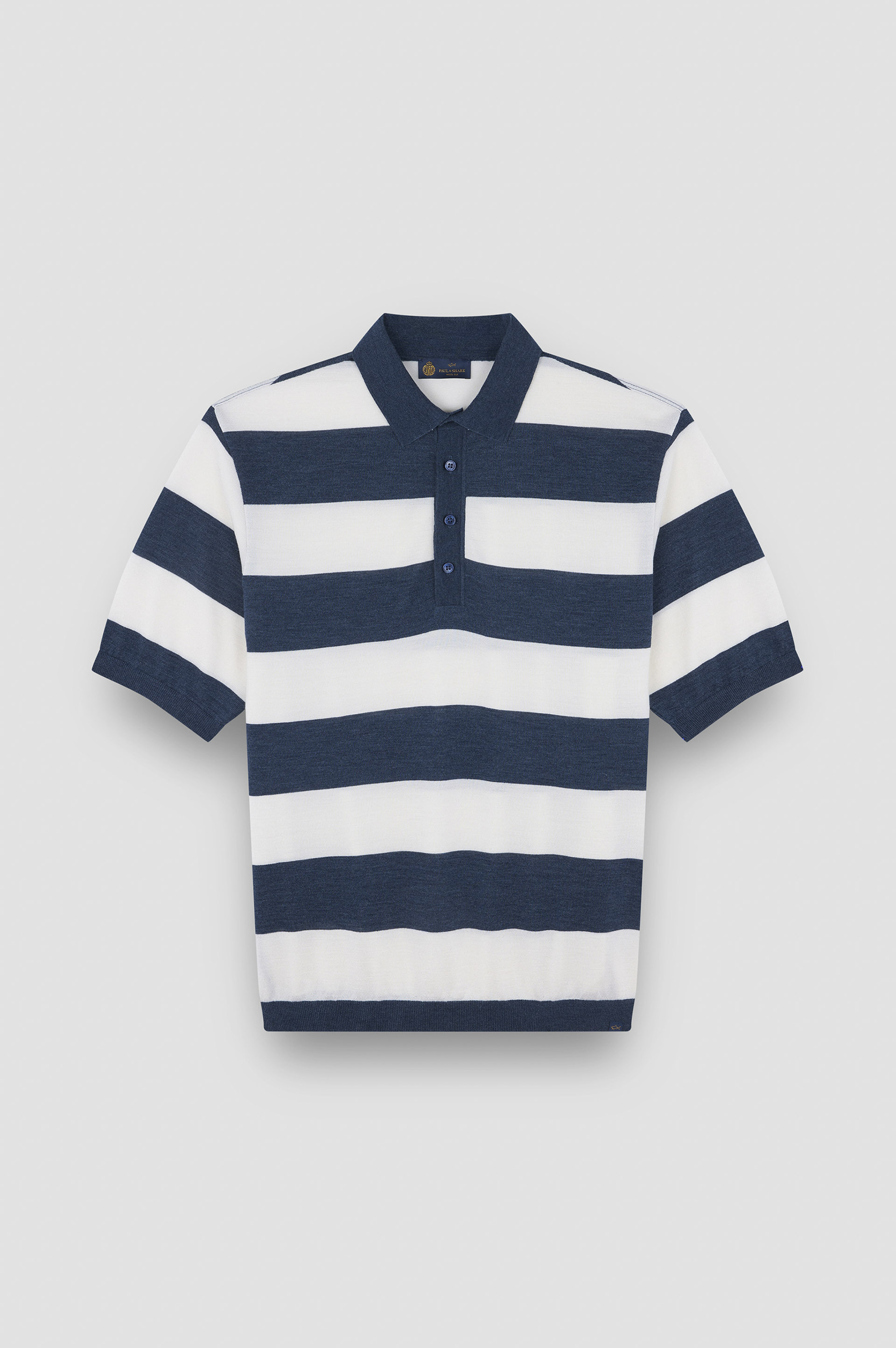 Luxurious materials, refined silhouettes and meticulous attention to detail: the ultimate embodiment of Paul & Shark's effortless elegance. A men's wardrobe essential with signature details that celebrate Paul & Shark’s rich sailing heritage. Crafted from wool and silk with a chunky knit, this polo shirt is enriched with an iconic Breton striped pattern to bring boundless energy to every look. Complete with a button placket and ribbed trims for a snug-fitting yet flexible silhouette. DETAILS Shark label Button closure Wool and silk polo shirt fineness 18 with striped pattern Ribbed collar, cuffs and flounce Knitted jersey Short sleeve Regular Fit Product ID: 15311135 COMPOSITION & CARE Composition: Outside: 70% virgin wool 30% silk