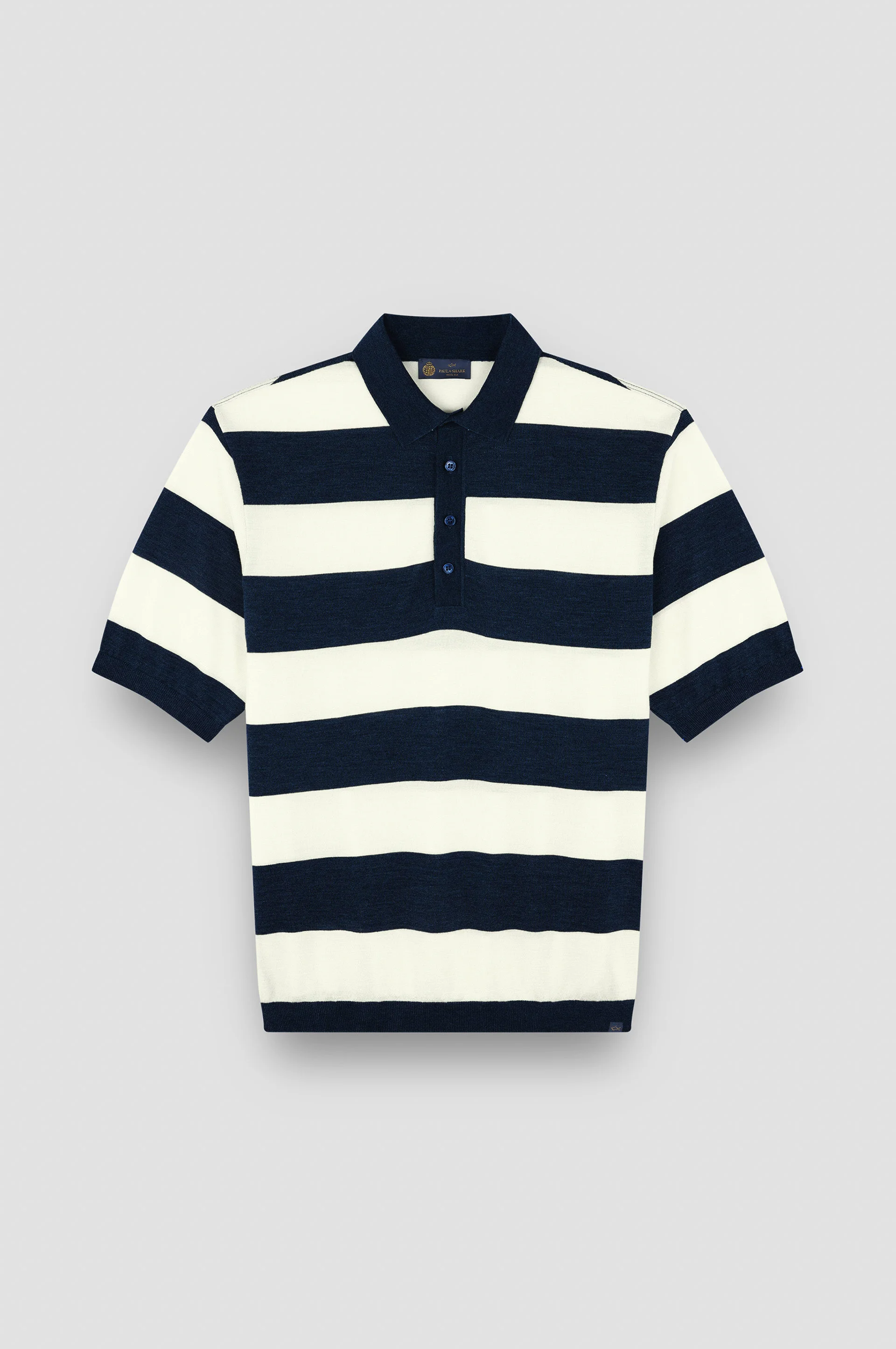 Luxurious materials, refined silhouettes and meticulous attention to detail: the ultimate embodiment of Paul & Shark's effortless elegance. A men's wardrobe essential with signature details that celebrate Paul & Shark’s rich sailing heritage. Crafted from wool and silk with a chunky knit, this polo shirt is enriched with an iconic Breton striped pattern to bring boundless energy to every look. Complete with a button placket and ribbed trims for a snug-fitting yet flexible silhouette. DETAILS Shark label Button closure Wool and silk polo shirt fineness 18 with striped pattern Ribbed collar, cuffs and flounce Knitted jersey Short sleeve Regular Fit Product ID: 15311135 COMPOSITION & CARE Composition: Outside: 70% virgin wool 30% silk