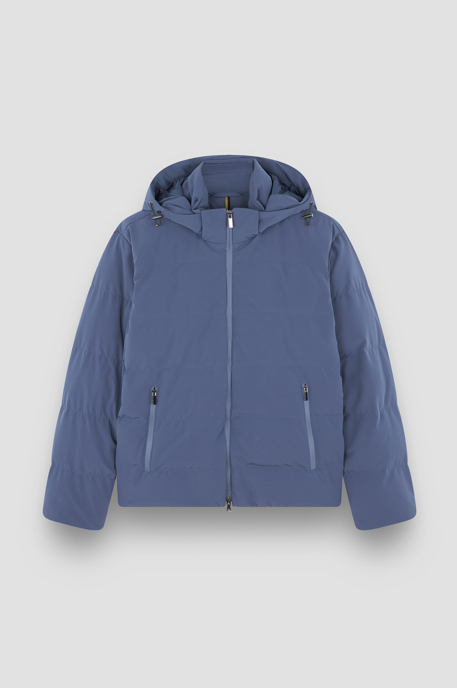 Typhoon Re-4X4 Stretch offers optimal resistance against water and wind, as well as four-way flexibility to naturally mould to your every movement. Designed to take on city errands and outdoor adventures with style, this jacket is crafted from special Typhoon Re-4X4 Stretch, engineered to flex in four directions so that it naturally moulds to your every movement. Its elegant silhouette is padded with Re-Goose Down, boasting a fill power of 650 whilst giving a new life to recycled goose and duck down. Re-Goose Down uses less water and energy than traditional fibres, and is made without the use of harmful chemicals. The inside reveals a shiny lining, while the smartphone pocket is isolated with E.M.W. protection technology to provide a shield against harmful electromagnetic waves. DETAILS Metal Shark Fin Detachable hood Heat-sealed double-slider zipper closure Channel quilting Typhoon® Re-4X4 Stretch down jacket with luminous lining External pockets with taped zippers Internal phone pocket E.M.W. and internal pocket with zipper Regular Fit Product ID: 15312007 COMPOSITION & CARE Composition: Outer: 88% polyester, 12% elastane - Lining: 100% polyester - Interlining: 100% polyester - Padding: 70% down, 30% feathers