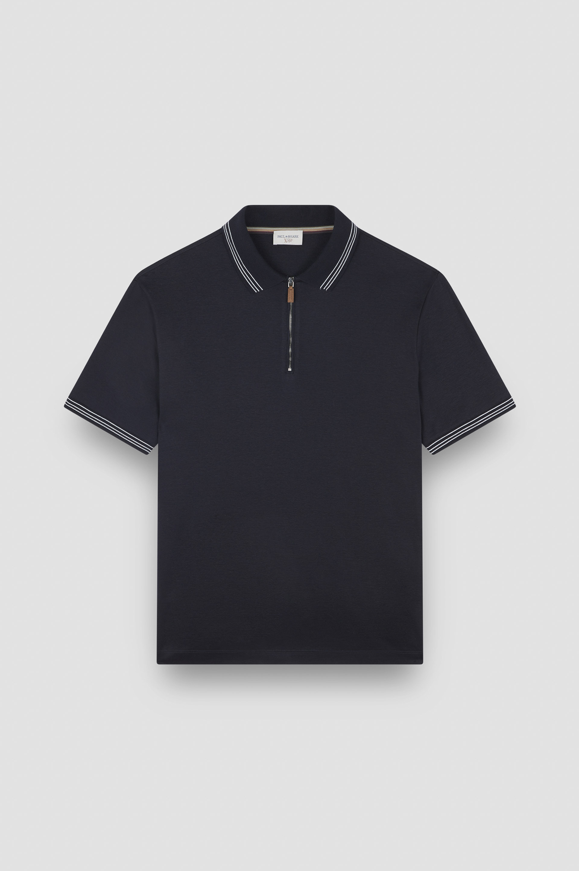 X-Soft is an exclusive treatment developed by Paul & Shark to bring out every garment's softest side. Effortless elegance meets versatile style for a timeless everyday look. This polo shirt is crafted from cotton-lyocell interlock, elevated with an innovative X-Soft treatment for an even more luxurious feel against the skin. Striped trims on the collar exude modern energy, while our Shark label elevates the silhouette with a signature Paul & Shark touch. DETAILS Shark label Zip closure X-Soft Interlock cotton polo shirt with striped profiles Ribbed collar and cuffs Interlock knit Short sleeve Regular Fit Product ID: 15311707 COMPOSITION & CARE Composition: 50% Cotton, 50% Lyocell