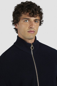 Perfect for off-duty outfits and city errands, this cardigan is crafted from a technical wool blend, knitted with a chunky ribbed texture that pays homage to Paul & Shark’s sailing origins. Its high-neck design is warm and cosy, featuring a circular metal zip pull and ribbed trims that gracefully flex to your every movement, while maintaining the elegant proportions of the silhouette. DETAILS Shark label Two-way zip closure Tech Wool zip-up sweater fineness 8 Ribbed collar, cuffs and flounce Side pockets English rib knit Long sleeve Regular Fit Product ID: 15311275 COMPOSITION & CARE Composition: Outer: 50% Virgin Wool 50% Acrylic