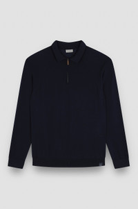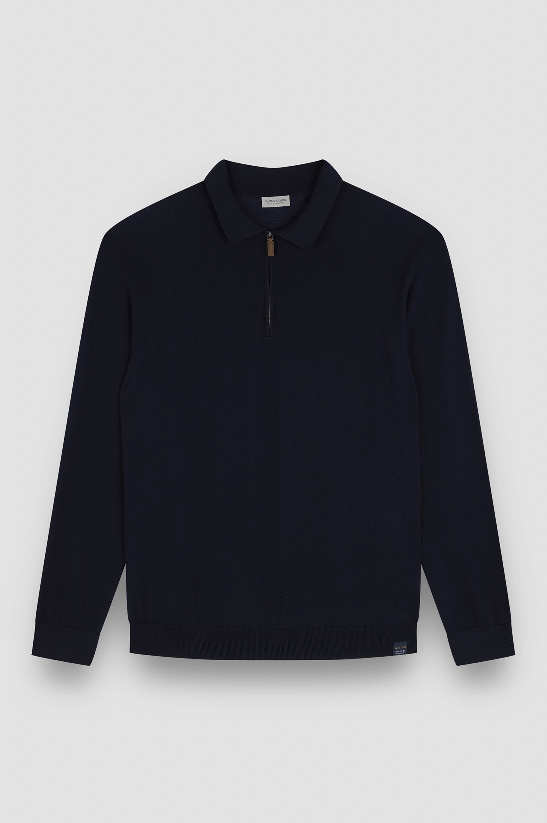 The pieces from the Riviera collection embrace those peaceful moments by the sea in winter when the waves gently crash against the shore, and the fresh air invites you to seek refuge in a minimal-chic style. Perfect for everyday looks and formal ensembles alike, this Paul & Shark jumper is an emblem of quiet luxury. Its stocking-stich design feels naturally soft against the skin, knitted from a refined blend of wool and cashmere. Characterised by a laid-back silhouette with meticulously curated details, it features our iconic Shark label on the hem and a leather pull for a luxurious touch. DETAILS Shark label Zip closure Wool and cashmere zip polo shirt fineness 18 Ribbed collar, cuffs and flounce Stocking stitch Long sleeve Regular Fit Product ID: 15311151 COMPOSITION & CARE Composition: Outer: 90% Virgin Wool 10% cashmere