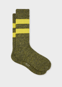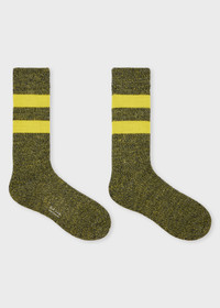 Made in England from a merino wool-blend, these socks feature a black and yellow twisted marl design. Complete with two blue stripes and ribbed cuffs. Product Code: M1A-194B-T609-79
