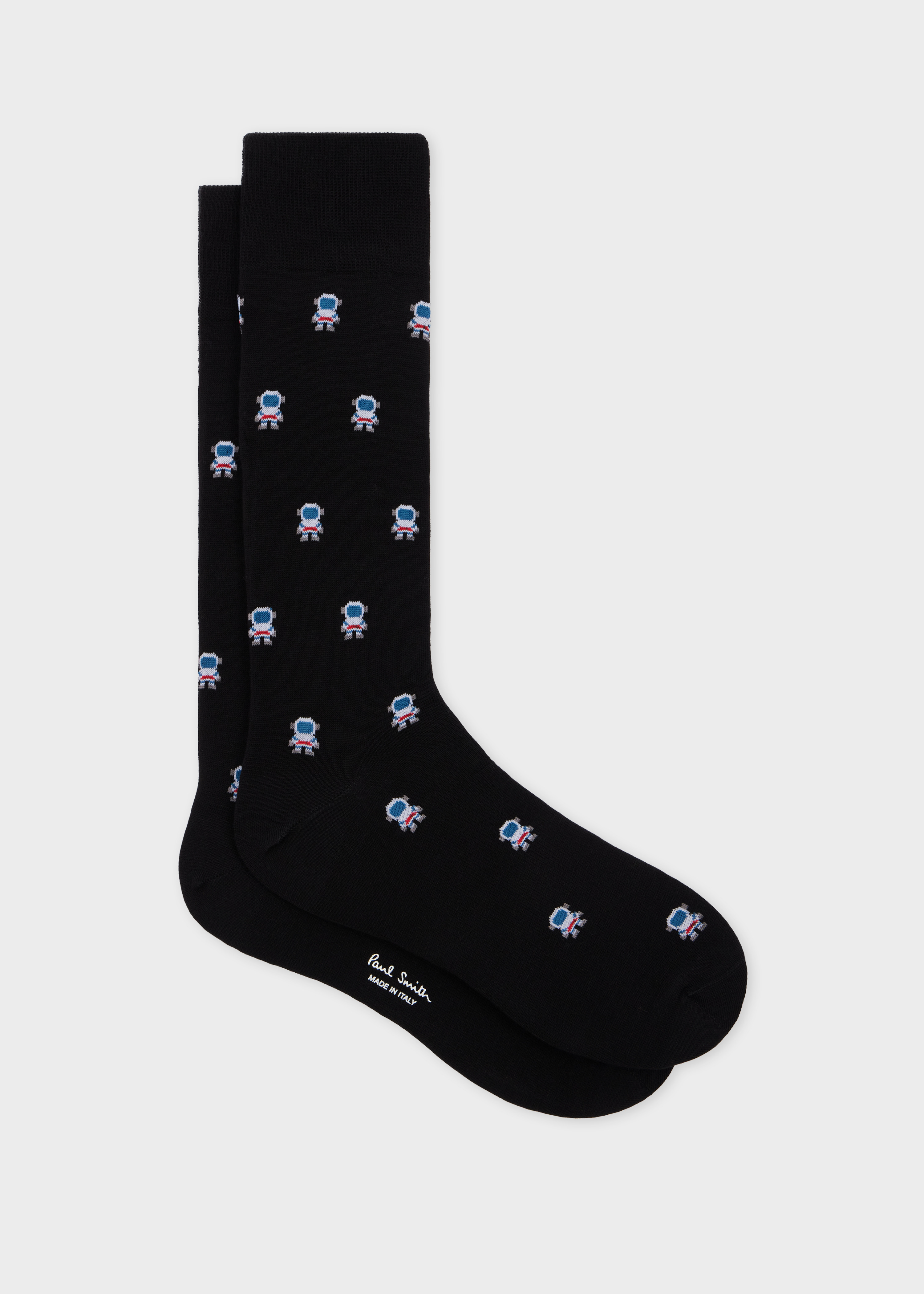 Made in Italy from an organically grown cotton with added stretch, these black socks feature an intarsia 'Astronaut' design. The socks feature ribbed trim and signature branding. Product Code: M1A-800MO-T692-79