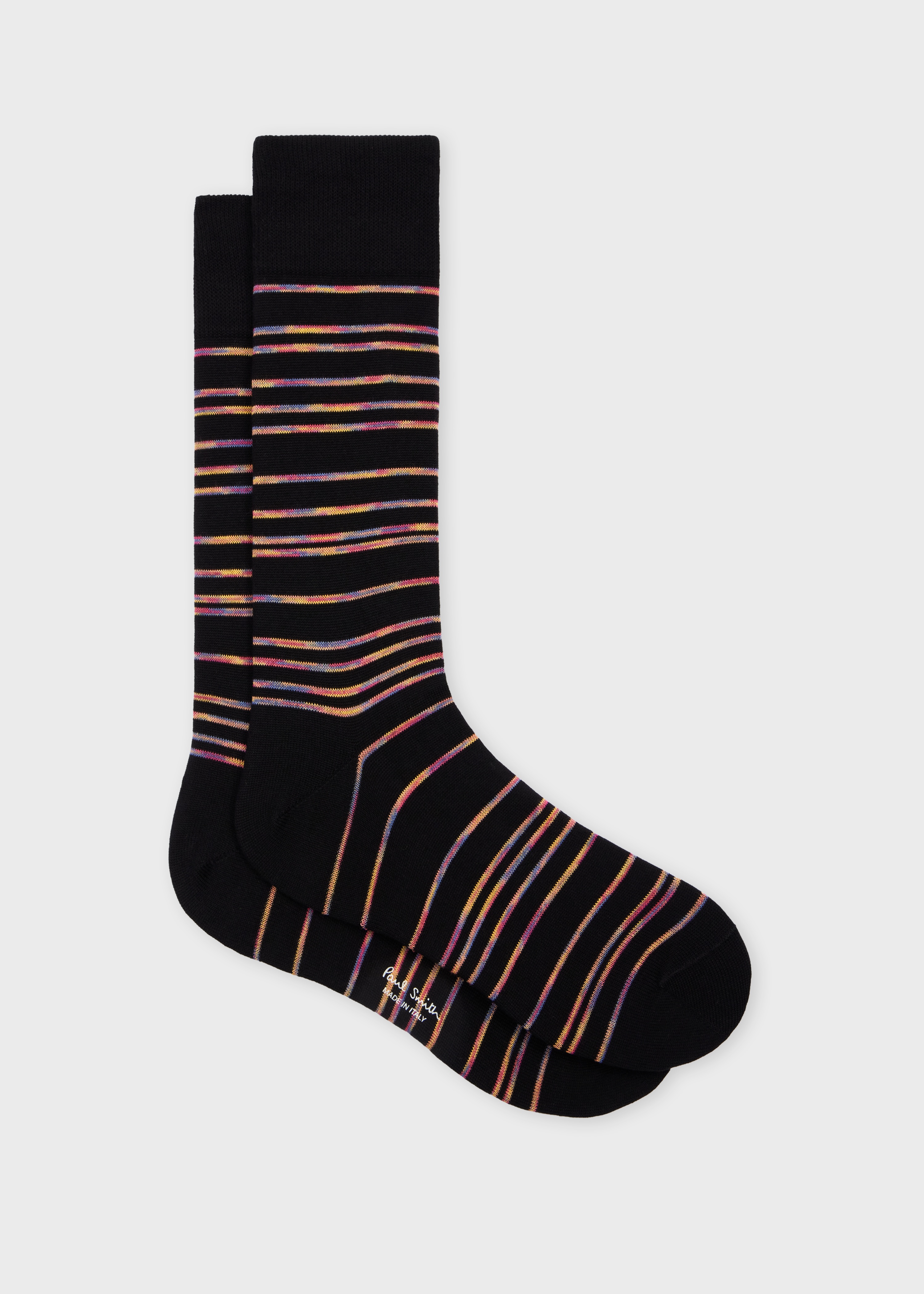 Made from a soft cotton-blend, these black socks feature a 'Pinstripe Signature' pattern throughout. With subtle colouring, these socks are ideal for everyday styling. Product Code: M1A-800MO-T582-79