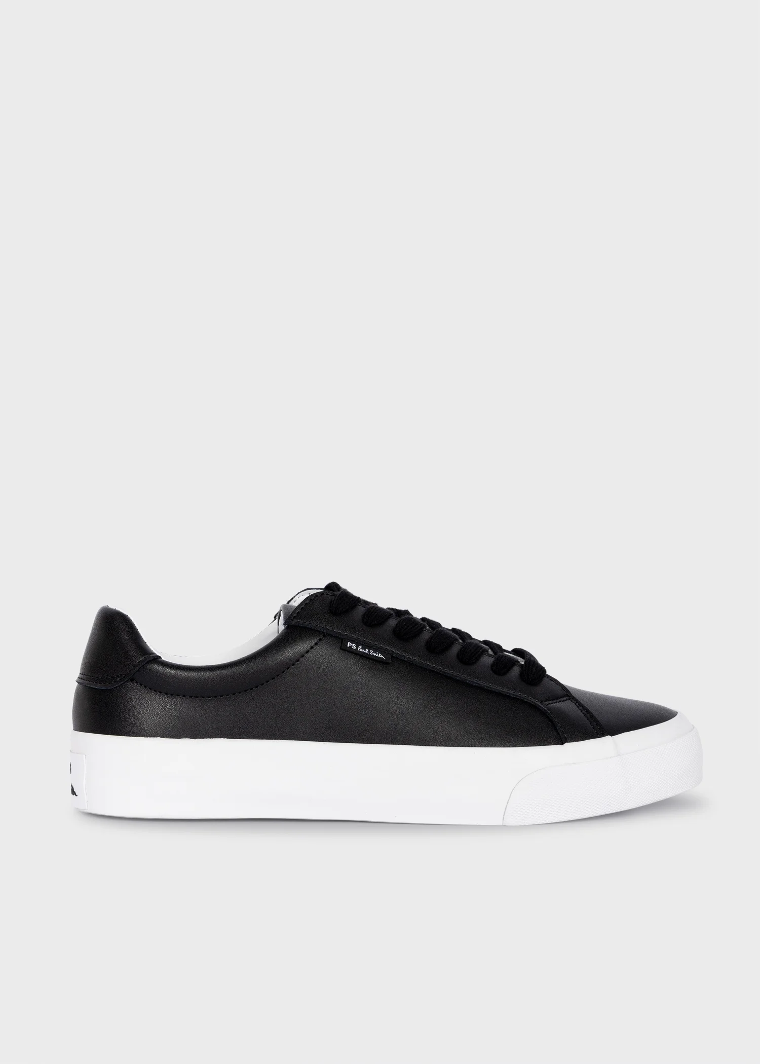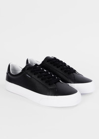 Made from premium leather uppers, the black 'Amos' trainers feature a classic design with vulcanised white rubber soles and tonal laces. Finished with PS Paul Smith logo at the heel and 'Sports Stripe' detail on the insole - for a signature flash of colour. 100% Leather Uppers 100% Rubber Soles Product Code: M2S-AMS02-NLEA-79