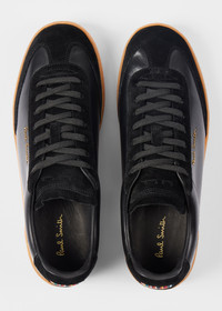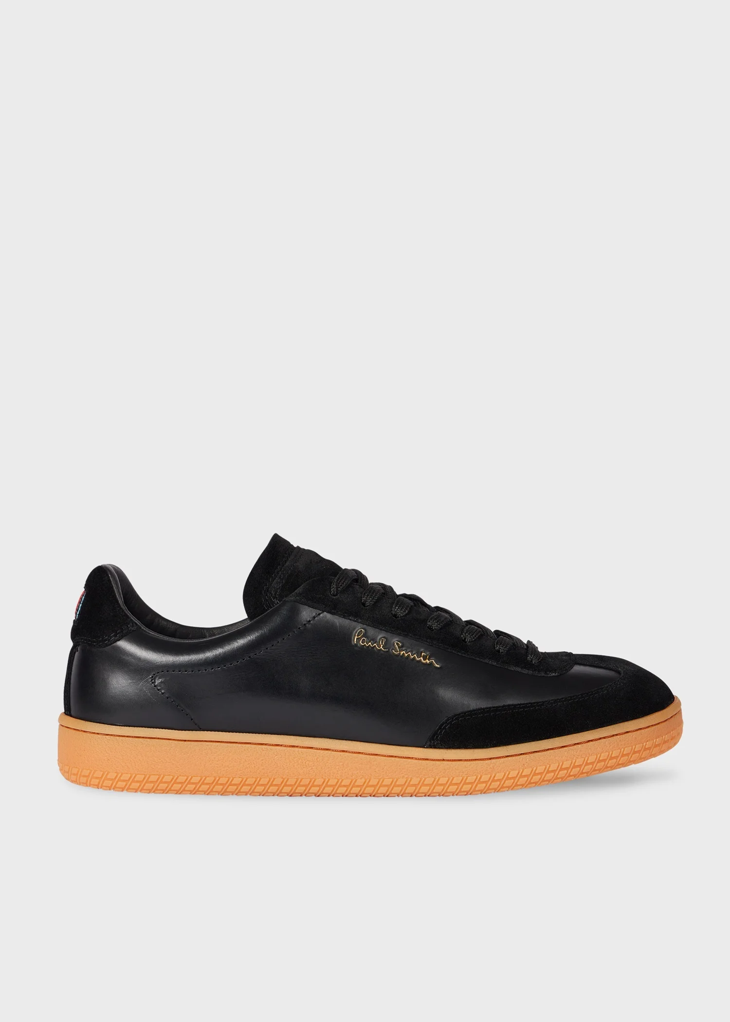 Made in Portugal from premium leather uppers, these black 'Como' trainers feature tonal suede trims on the toe and heel. Finished with sturdy Vibram rubber cupsoles, a 3D Paul Smith logo emblem and 'Signature Stripe' panel at the heel. 100% Calf Leather Uppers 100% Rubber Soles Made in Portugal Product Code: M1S-CMO06-NCLF-79