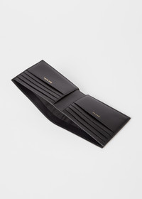 Men's black billfold wallet with optional gold foil hand-monogrammed initials on the exterior corner. Made in Italy from a smooth leather, this wallet contains eight credit or business card slots, a large compartment for notes and receipts and two small side compartments for extra storage. Size when closed: 10.9 x 9.4cm 100% Leather Made in Italy [b]Please note all Monogrammed items are non-returnable.[/b] Product Code: M1A-4832-RW937-79