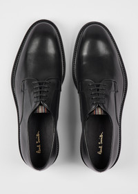 Made in Portugal, these black 'Magnum' shoes are crafted from rich leather, showcasing a timeless Derby style. Featuring a smooth-toe silhouette and signature Paul Smith logo on the sole, these shoes are perfect for any formal occasion, offering both style and durability. Made in Portugal 100% Leather Product Code: M1S-MGM03-TLEA-79