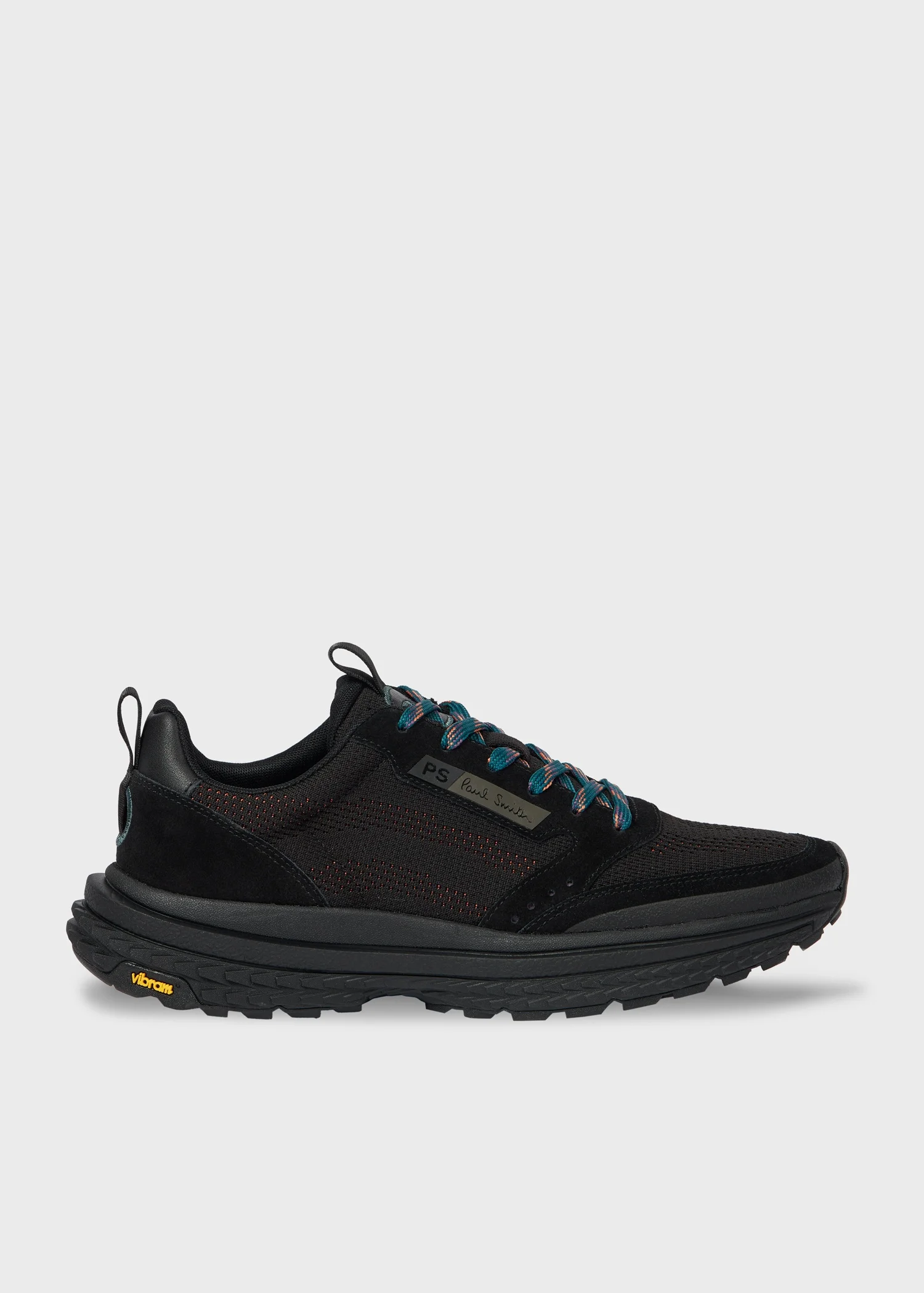 Made from a lightweight nylon knitted upper, these black 'Darter' trainers feature tonal overlays and a chunky Vibram sole for added grip and durability. Inspired by trail running styles, these trainers are finished with contrast laces and tonal heel pulls. 70% Nylon, 30% Polyurethane Uppers 100% Rubber Soles Product Code: M2S-DAR01-NNYL-79