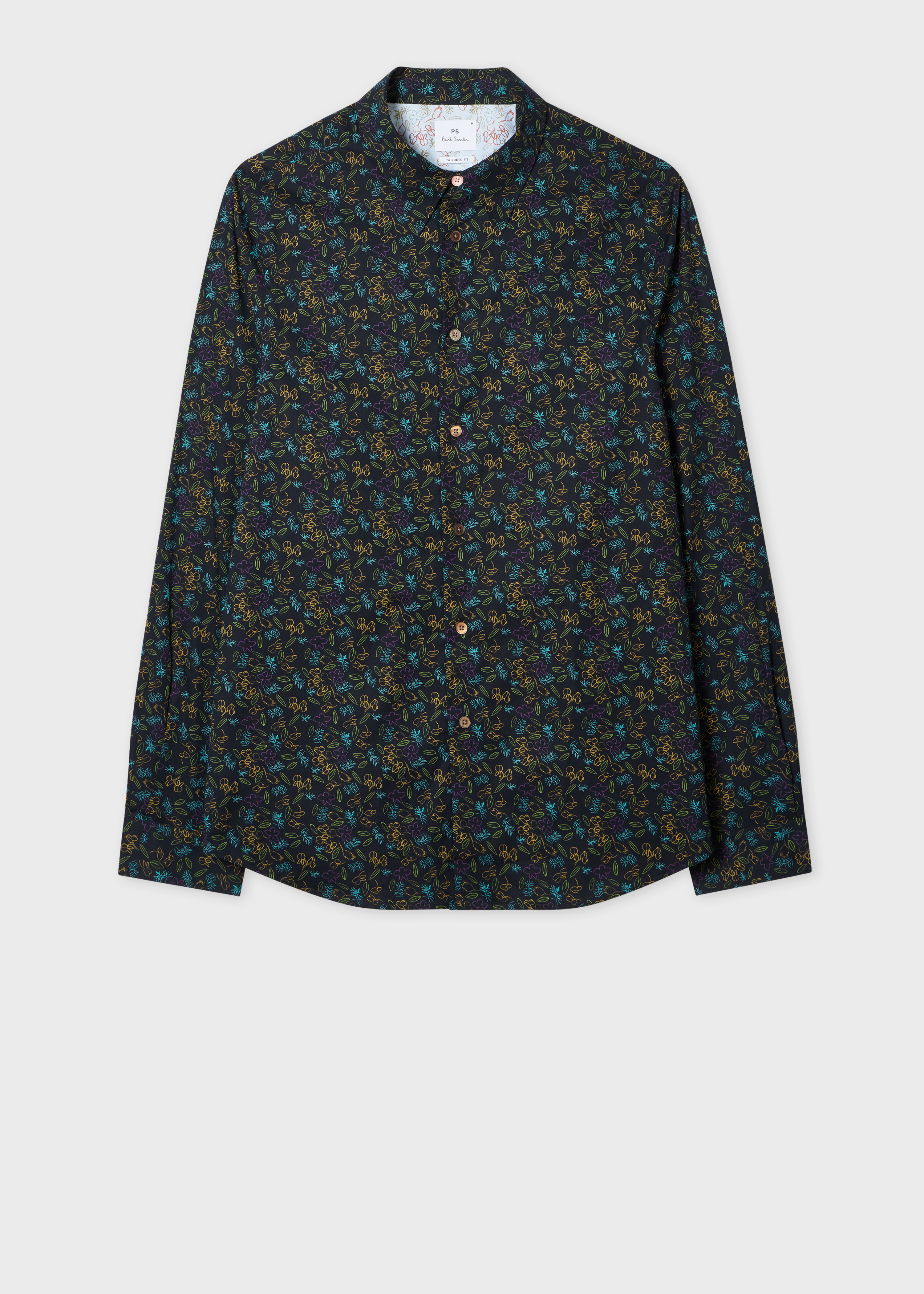 Crafted from a soft organic cotton-blend, this black 'Globe Flower' shirt features a colourful print throughout. Cut for a tailored-fit, this versatile shirt is perfect for transitional, formal styling. The Size - Model wears a size M - Height 6’0’’ / 183cm - Chest 38’’ / 96.5cm - Waist 32’’ / 81cm The Fit - Tailored-fit is slimmer through the shoulders and body for a sleek, contemporary silhouette - We recommend taking your normal size for this shirt - For a more relaxed fit, consider sizing up Product Code: M2R-149T-T22411-79