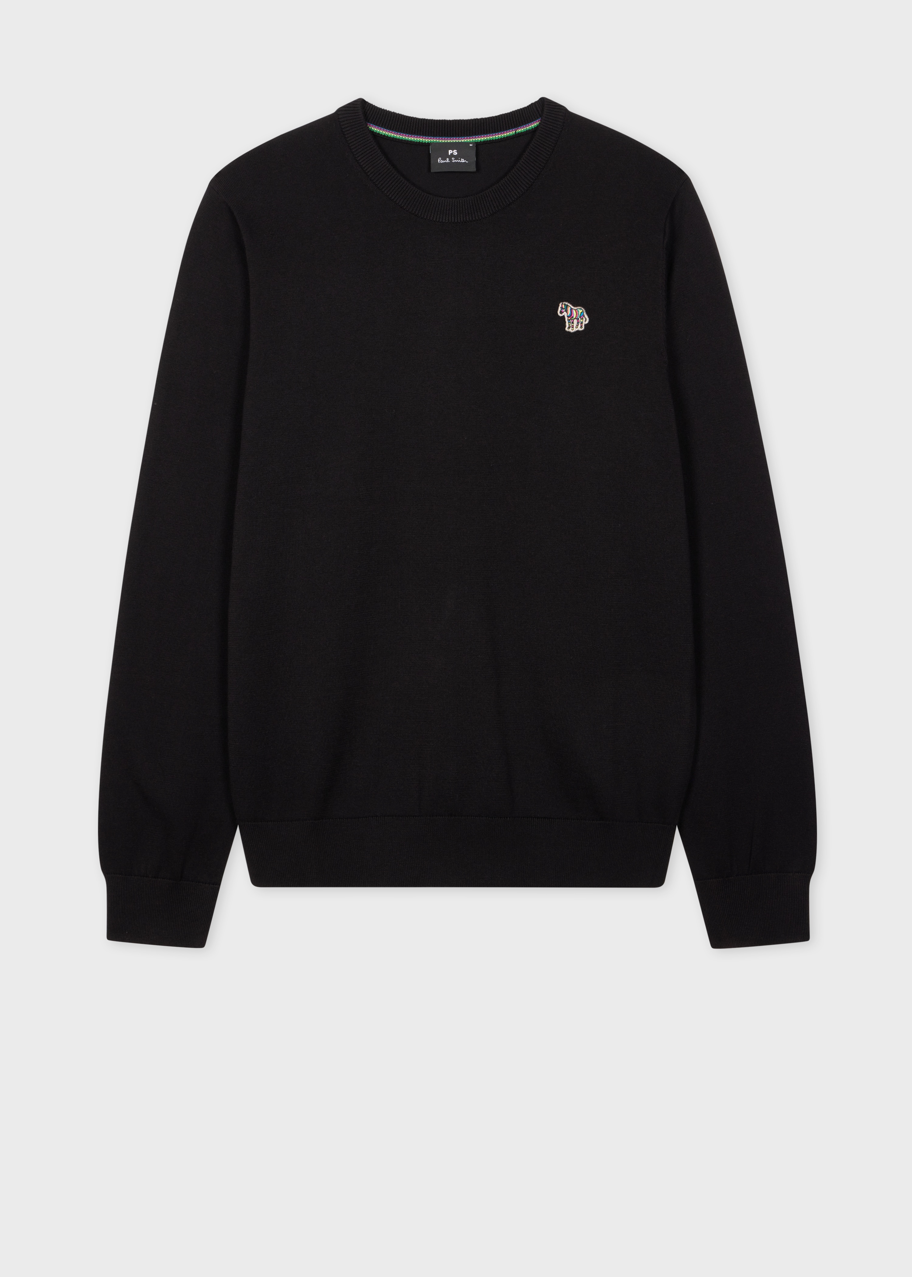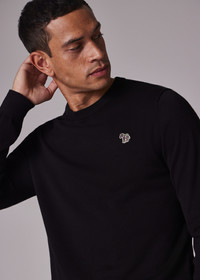Made from 100% organic cotton for a soft finish, this black crew neck knitted sweater features our classic zebra logo stitched on the chest. Ideal for versatile everyday styling, this sweater is finished with ribbed collar, cuffs and waistband and our 'Sports Stripe' internal trim - for a signature flash of colour. 100% Organic Cotton Machine washable The Fit Regular-Fit is relaxed through the body Product Code: M2R-503XZ-M21858-79