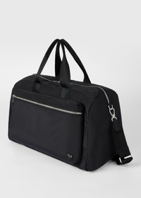 Made from recycled polyester twill with tonal leather accent trims, this black holdall features a 'Zebra' badge design. The holdall features a spacious lined interior and additional exterior pockets, all with zip fastenings for added security. Product Code: M1A-8196-TZEBRL-79