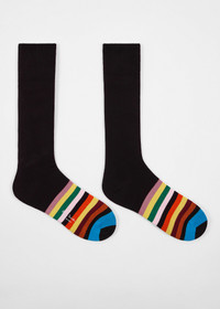 Made in Italy from a soft cotton-blend, these black socks feature our classic 'Signature Stripe' tipping for an added pop of colour. Product Code: M1A-380CI-P440-79