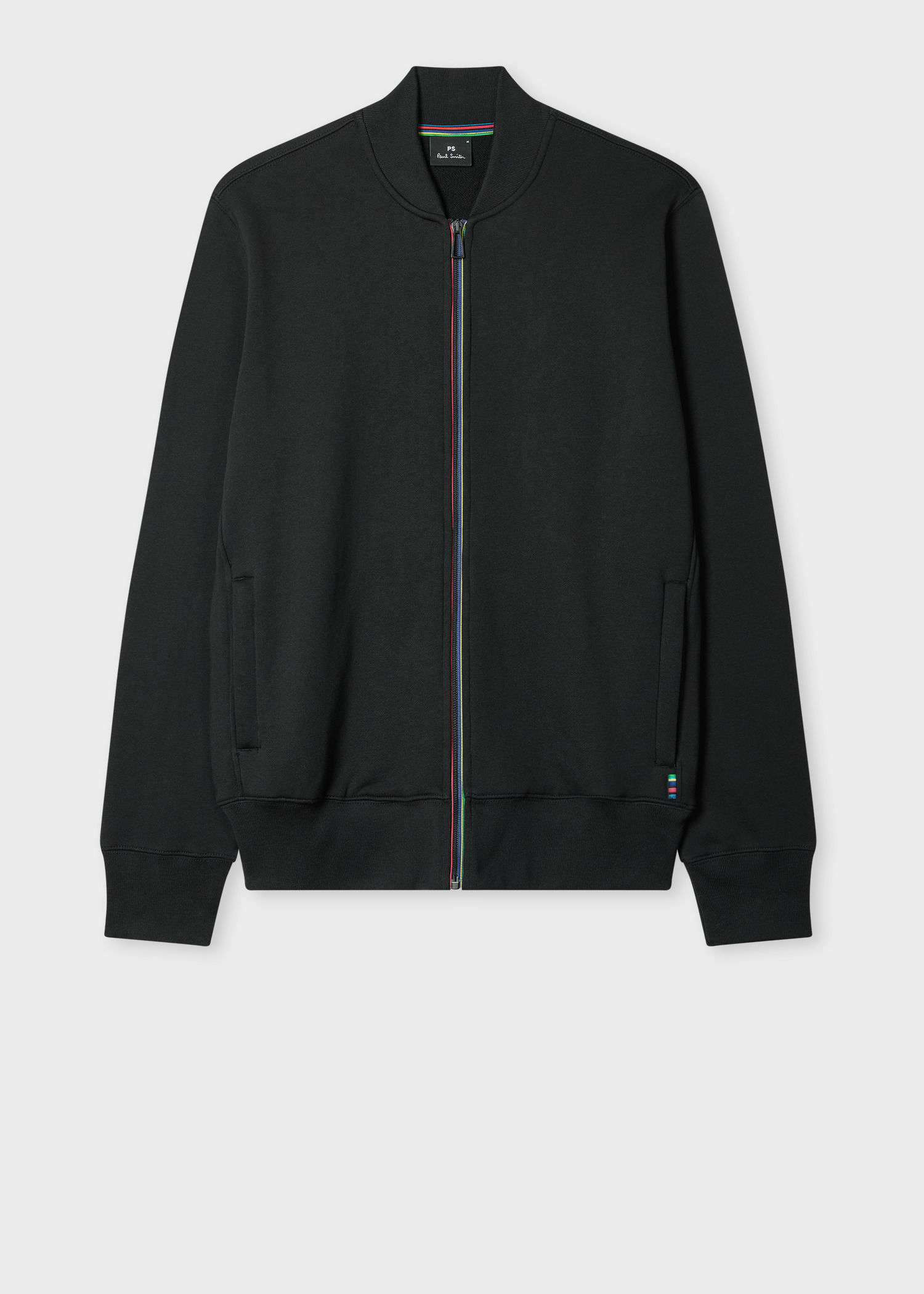 Made from 100% organically grown loopback cotton jersey, this black jacket features a classic bomber shape. Complete with zipped pockets for practicality, this jacket is finished with a 'Sports Stripe' zip for a signature flash of colour. The Fit - Regular-Fit is relaxed through the body. Product Code: M2R-258SB-T21169-79