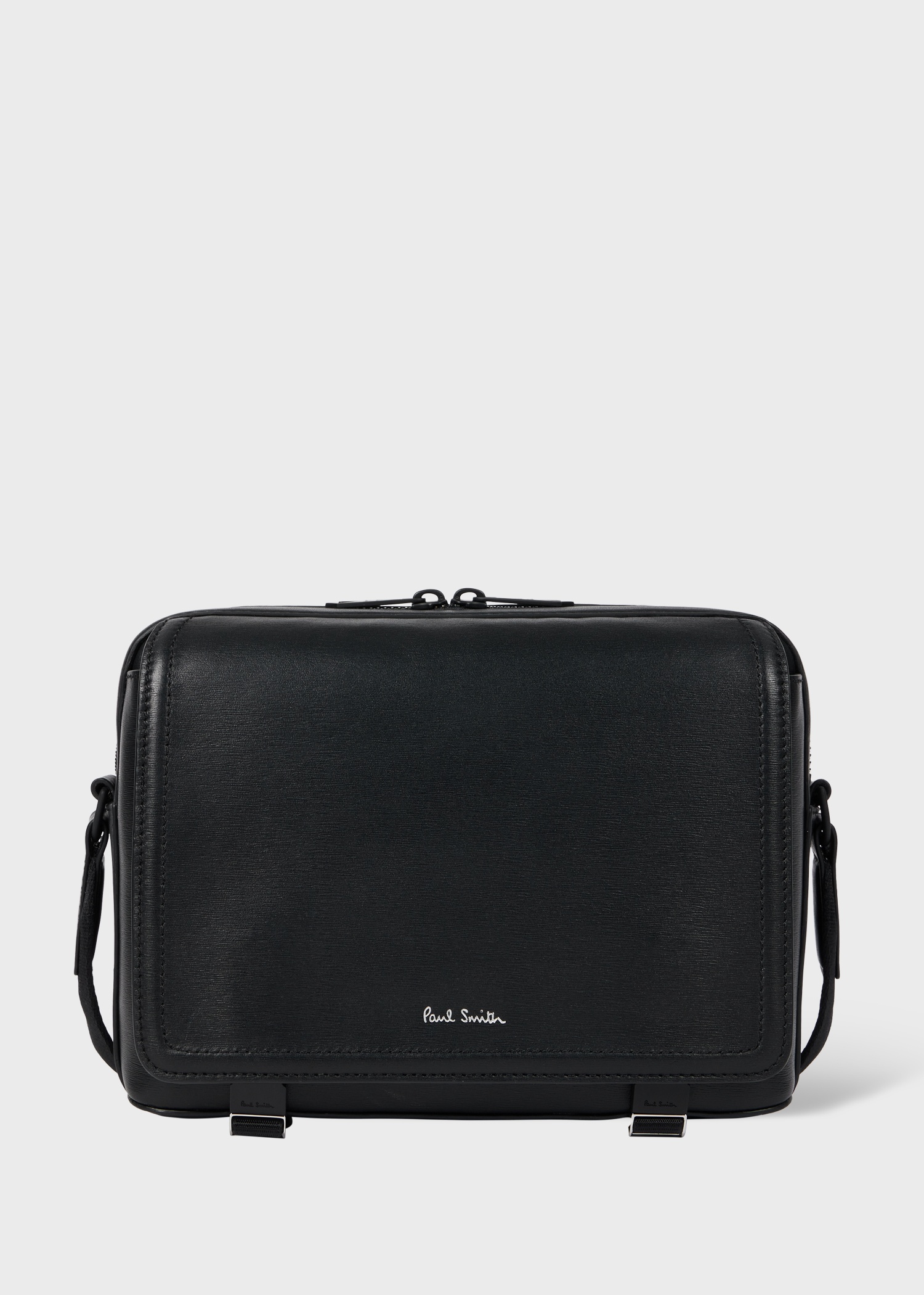 Made from a classic embossed straw-grain leather, this black messenger bag features a double clip fastening flap front with silver logo. Complete with an adjustable webbing strap with logo detail, this bag is finished with an internal zip pocket with 'Signature Stripe' lining. Size: H16.5 x W22 x D5cm 100% Leather Product Code: M1A-8018-BSGRAI-79