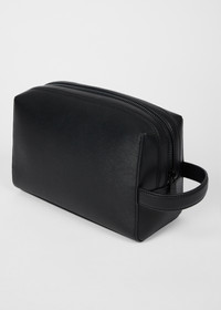 Black Straw-Grain Embossed Leather Wash Bag