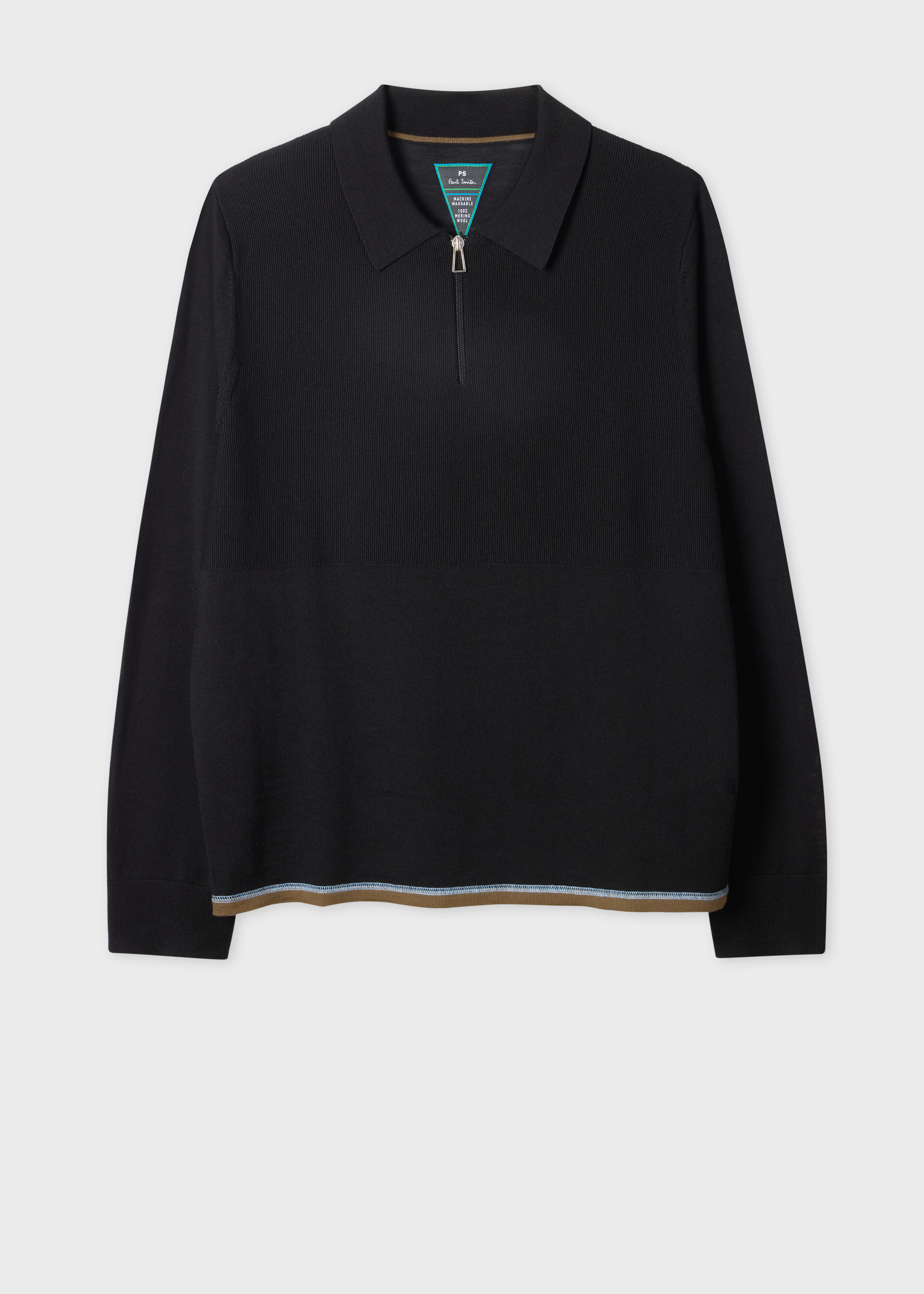 Black Zip Washable Merino-Wool Polo Shirt