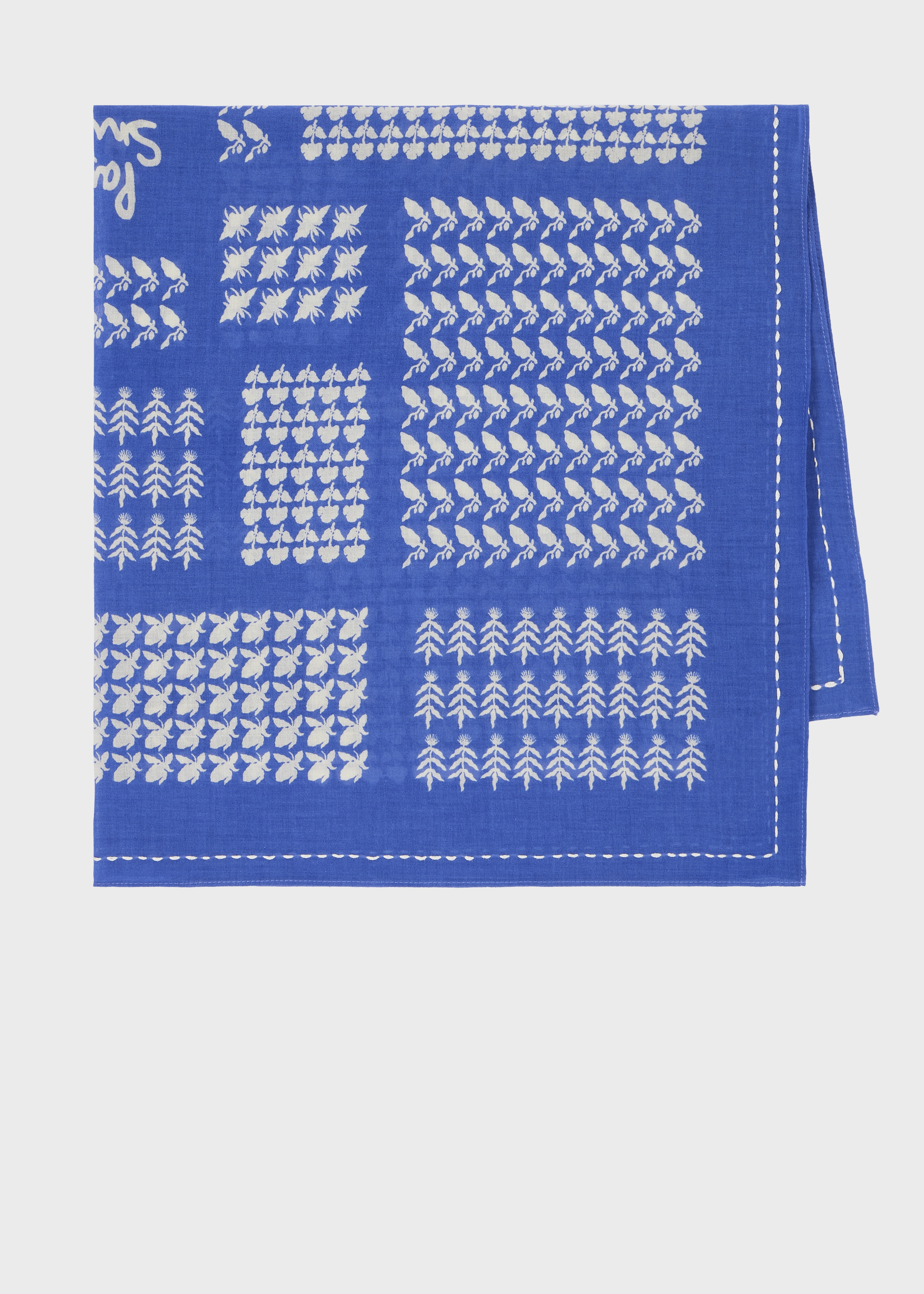 Blue Contrast Motif 'Bandana' Cotton Scarf