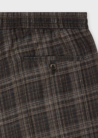 Made in Portugal from a tropical silk, wool, and linen-blend cloth with a lightly textured finish, this suit features a brown and navy check pattern. The blazer is unlined and lightweight for a relaxed, tailored look. Cut for a tapered fit, these trousers are finished with an elasticated, drawstring waist for a comfortable fit. Product Code: M1R-SUIT-R02700-68