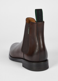Made from premium leather with a classic Chelsea boot design, these brown 'Augustus' boots feature comfortable rubber soles with a teal zebra pattern insert. Complete with elasticated side gores and logo heel pulls for ease of wear. Product Code: M2S-AUG02-TLEA-68